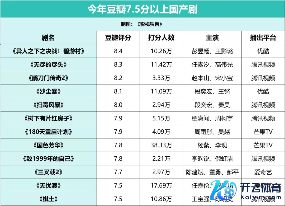 经过筛选发现,本年上半年豆瓣评分7.5分以上的国产剧共12部,总和不算少。但8分以上的剧仅5部,咫尺还未出现8.5分以上的超高口碑剧集。