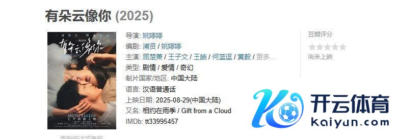 《有朵云像你》由姚婷婷抓导,屈楚萧、王子文领衔主演,阐明了一个对于向上存一火的爱情故事。逝去的爱东谈主秦天(屈楚萧饰)在雨季如约归来,以 8 年客岁轻的神志与老婆萧凡(王子文饰)重逢。尽管挂念清零,两东谈主却在雨滴见证下重燃爱火,演绎一场向上存一火、稀奇时空的极致幽闲。