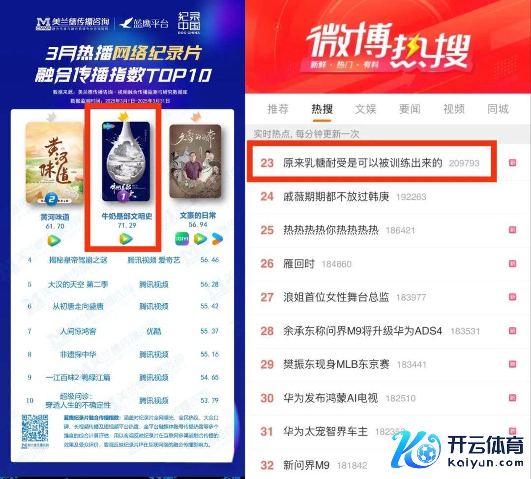不要小看这些线下活动,动作互联网活跃度最高的Z世代,他们会将线下吩咐场景中的心多礼会在线上连接延迟,把更多东说念主带入到对于这部记录片、对于品牌的筹办场中,进而酿成了一个从热议话题到口碑,从线下到线上的高频传播场。在微博上, “乳糖耐受不错被教师出来”的学问点被反复筹办;“这口顺德非遗双皮奶太丝滑了”“奶茶你更爱甜口如故咸口”等好意思食出圈话题也捏续诊治着不雅众的不雅看祈望。而在3月热播会聚记录片袪除传播指数上TOP1的好得益,更是印证了以“线下反哺线上”传播通路的后果。
