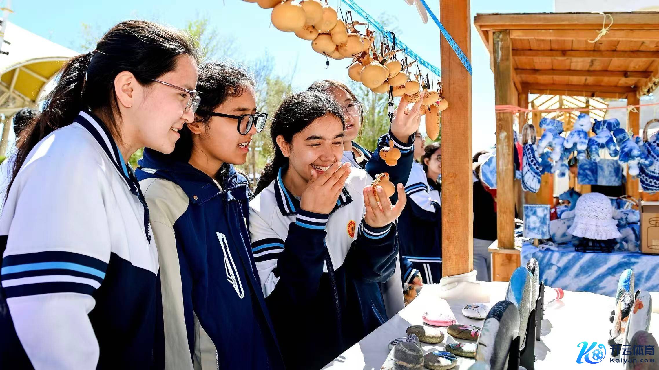 在新疆特种旅游节“原野市场”上,插足研学的学生正在选购脾气非遗文创居品。努尔夏提·尼加提 摄