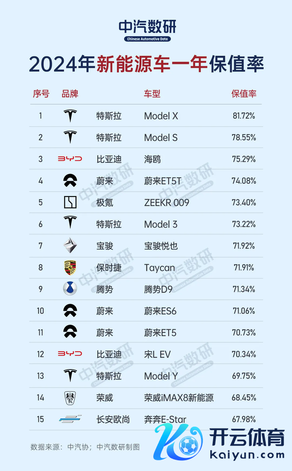 此外九游体育app娱乐,车型保值率和品牌影响力、销量范畴等也有很大相关,像特斯拉和蔚来等品牌王人有多个车型上榜。
