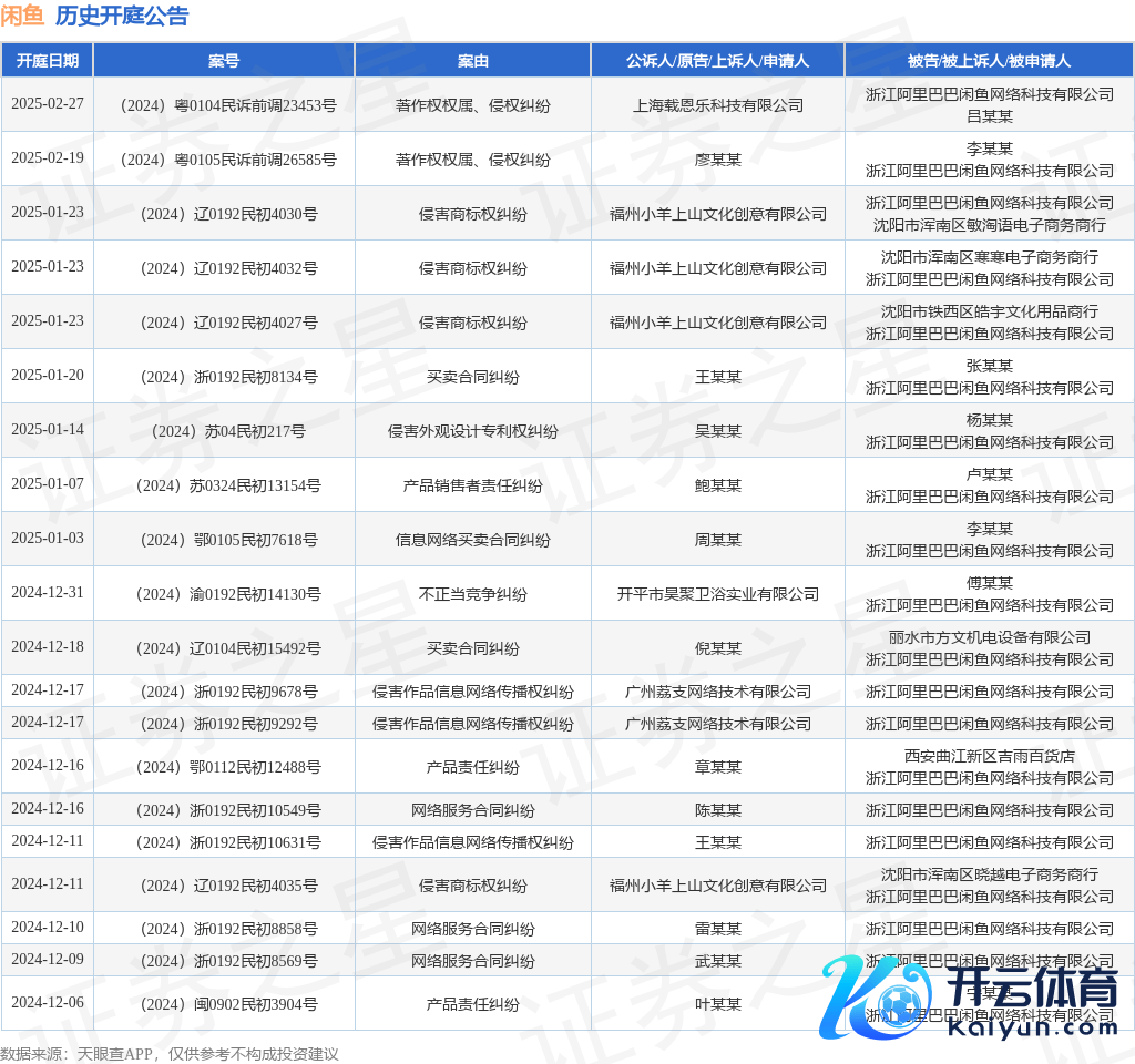 本站音书现金九游体育app平台,凭证天眼查APP露出,近日公布了一则浙江阿里巴巴闲鱼收罗科技有限公司四肢被告/被上诉东谈主的开庭公告,小心本体如下:
