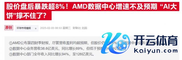 AMD 周二发布的功绩讲述表露,公司数据中心干事部交易额创季度新高,达 39 亿好意思元,同比增长 69%,逊于分析师预期的 41.2 亿好意思元。