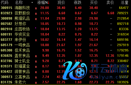 食物饮料股盘中大幅走高,截止收盘,田园股份、熊猫乳品涨超11%,好思你、庄园牧场、来伊份、一鸣食物等涨停。