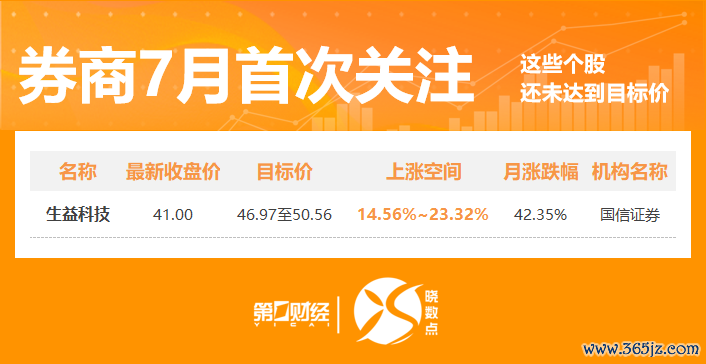生益科技的最大涨幅空间超23%,该股最新收盘价报41元,国信证券在7月21日发布的研报中给出了46.97元至50.56元的见地价。