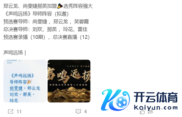 从传出的音信上看,预选赛的导师有尚雯婕、郑云龙、吴碧霞,而送决赛的导师有刘欢、那英、玲花、雷佳九游体育app娱乐,不得不说,导师声势詈骂常豪华的,列位读者,你们期待《声鸣远扬2025》吗?让咱们共同时待杨子男儿“杨海润”的施展吧!