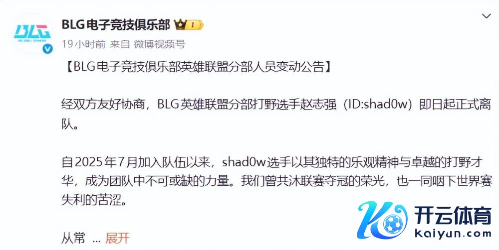 BLG的这一次东谈主员变动号称迫害。公告露出,打野选手杨陵(ID:Beichuan)和赵志强(ID:shad0w)即日起厚爱离队。加上助理闇练KaKAO的离开,BLG在转会期完成了气势精简。