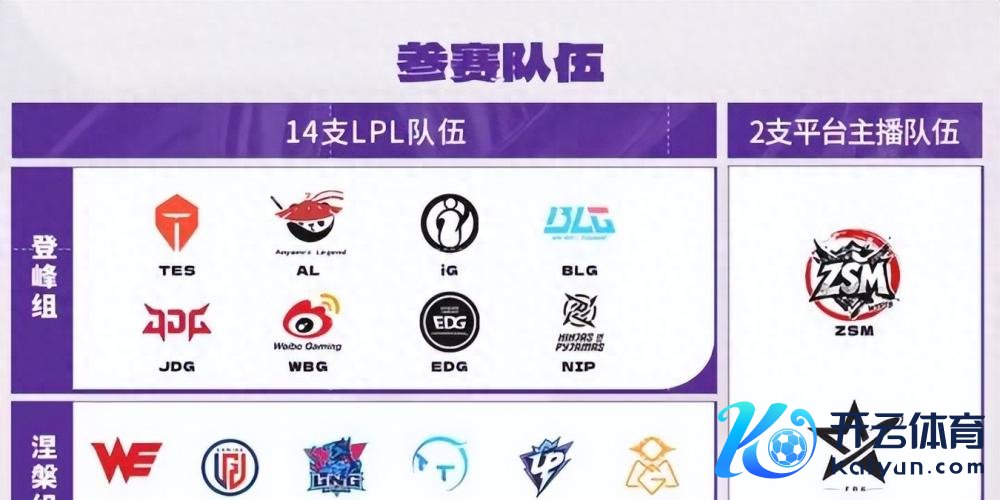 参赛军队包括14支LPL军队(RNG缺席)和2支主播军队(城墙哥ZSM和果子哥FRK),共16支战队。