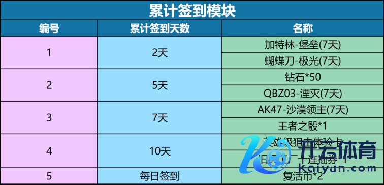 累计签到和逐日签到也藏着超多福利。累计签到2天拿加特林-堡垒(7天)、蝴蝶刀-极光(7天);5天领钻石50、QBZ03-消释(7天);7天平直解锁A47-沙漠领主(7天)和王者之骰 1个;10天还有旧兵工场十连抽券和好汉级狙击枪体验卡。咱们坚握签到就能把系数奖励抱回家,逐日签到的回生币*2也很可以,整年累月超实用。