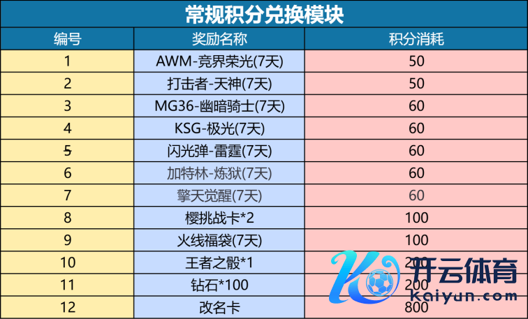 惯例积分兑换也很招引东谈主啊,惯例兑换里AWM-竞界荣光(7天)、打击者-天神(7天)惟有50积分,其中更名卡、王者之骰、钻石是每周限量谈具,需要咱们拼手速啊,手慢则无。