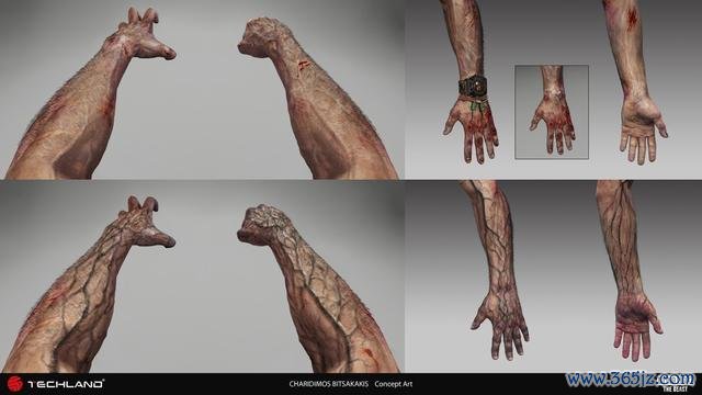 在第一东谈主称游戏里,展示东谈主物外不雅可拦阻易,毕竟玩家只可看到我方的手。是以,咱们在这上头下了大功夫。咱们重现了初代的双手,但又加上了新伤痕和足迹,仿佛在无声地诉说着他在男爵实验室里遭受的祸害。恰是这些实验,让他获取了野性之力。为了让玩家能亲目击证这种周折,咱们创造了一种独到的视觉讲话:昏黑、充满抑制的玄色血管,圆善地反馈出克兰的体魄情景,以及他变身野兽后看到的全国。