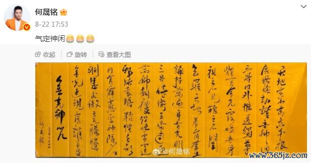 就连此次被许凯牵累,何晟铭东谈主在家中坐,"白蟾光"热搜来,他的回话也一样大大方方。网友玩梗他也玩,微博上发了幅手写的金光神咒,配文"气定神闲"。