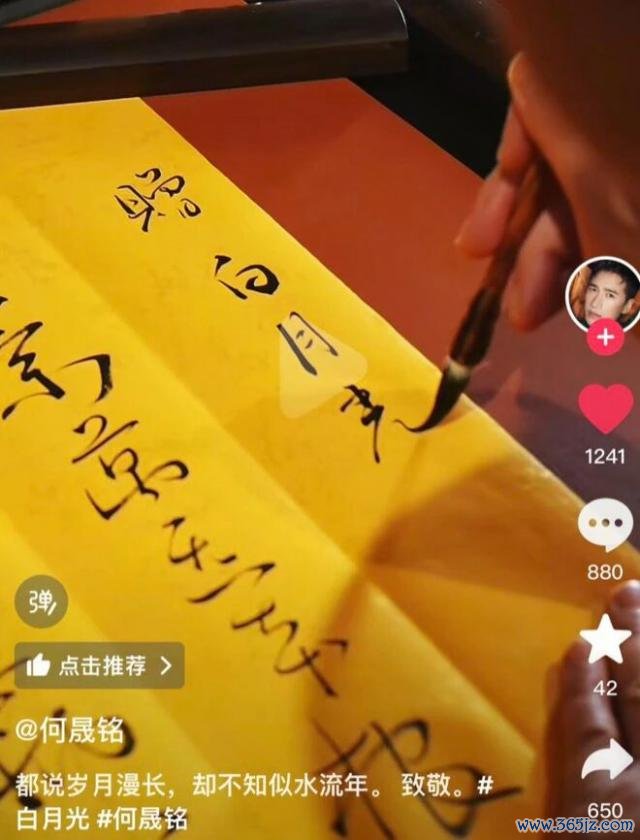 抖音上这幅字多了"赠白蟾光"四个大字,致使还带了 # 白蟾光 # 话题,网友问如何回事,他就说是手滑。