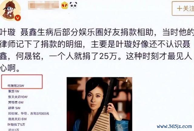 2013 年,女演员聂鑫因为车祸脊椎严重受损,瘫痪截肢后最终亏本。她亏本后,讼师露面公布捐钱明细,网友才发现她收到的 81 万捐钱里,有 25 万来自何晟铭。