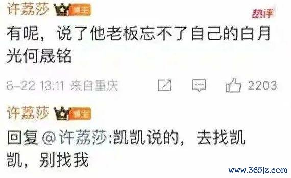 事情还得从魔嫂许荔莎说起,她在曝光许凯各式丑事、跟于正对线正面刚的破绽里,不测间羼杂了一条爆料:许凯说他雇主忘不了我方的白蟾光何晟铭。