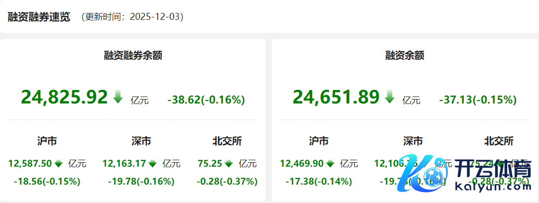 上证报中国证券网讯(卢伊记者徐蔚)12月3日九游体育app官网,A股两融余额为24825.92亿元,较上一往过去减少38.62亿元,占A股运动市值比例为2.60%。当日两融往返额为1614.91亿元,较上一往过去加多53.15亿元,占A股成交额的9.58%。