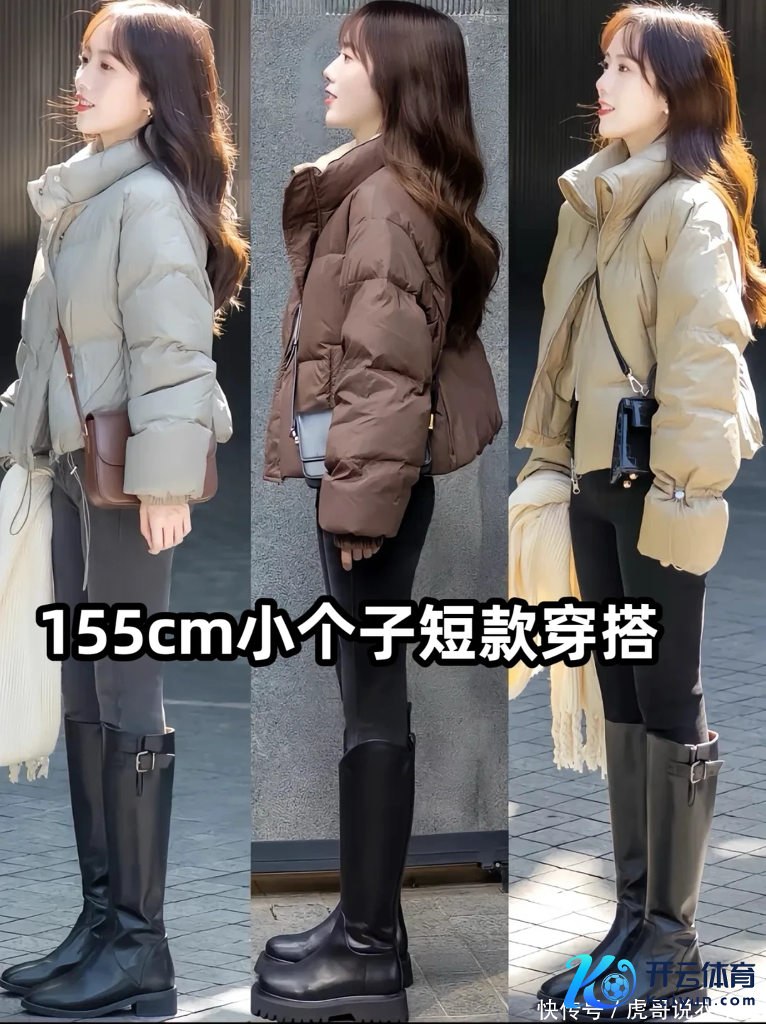 短款羽绒服,收腰羽绒服,大致短款外相外衣,搭配小黑裤配长筒靴,大致过膝长靴,领先视觉上即是三七分躯壳比例,上宽下窄的视觉恶果,王人备是为小个子量身定制的穿搭决议。