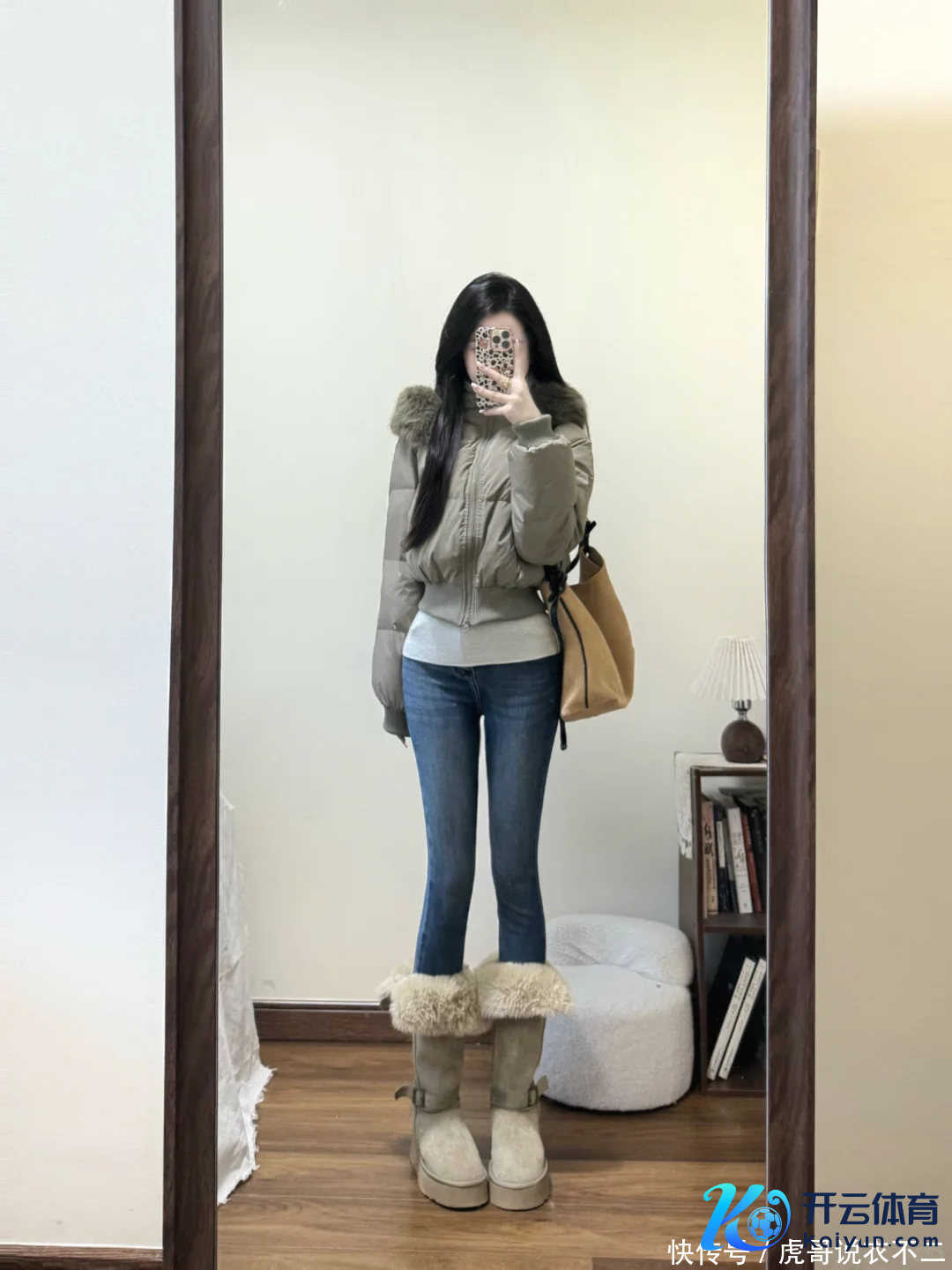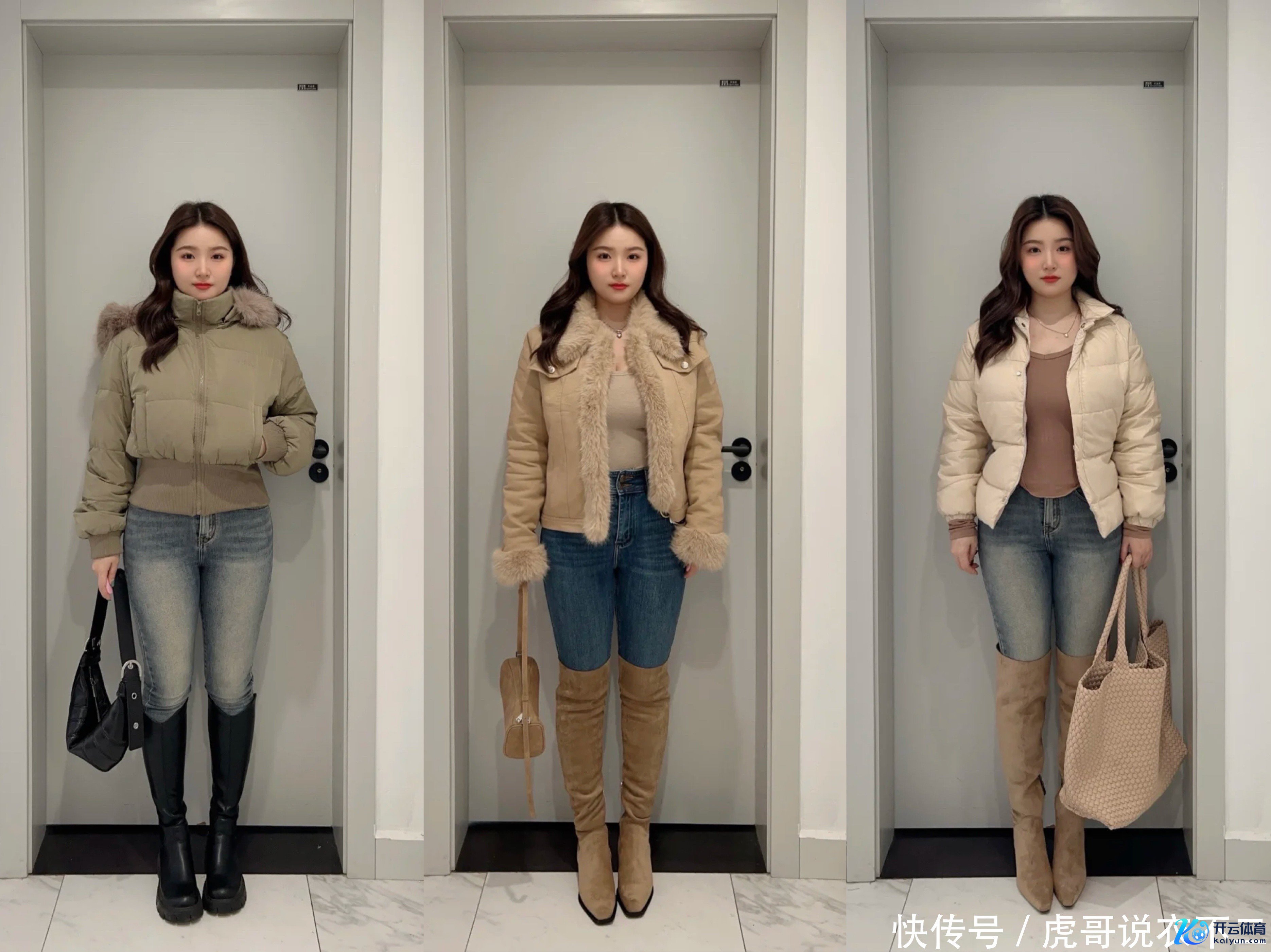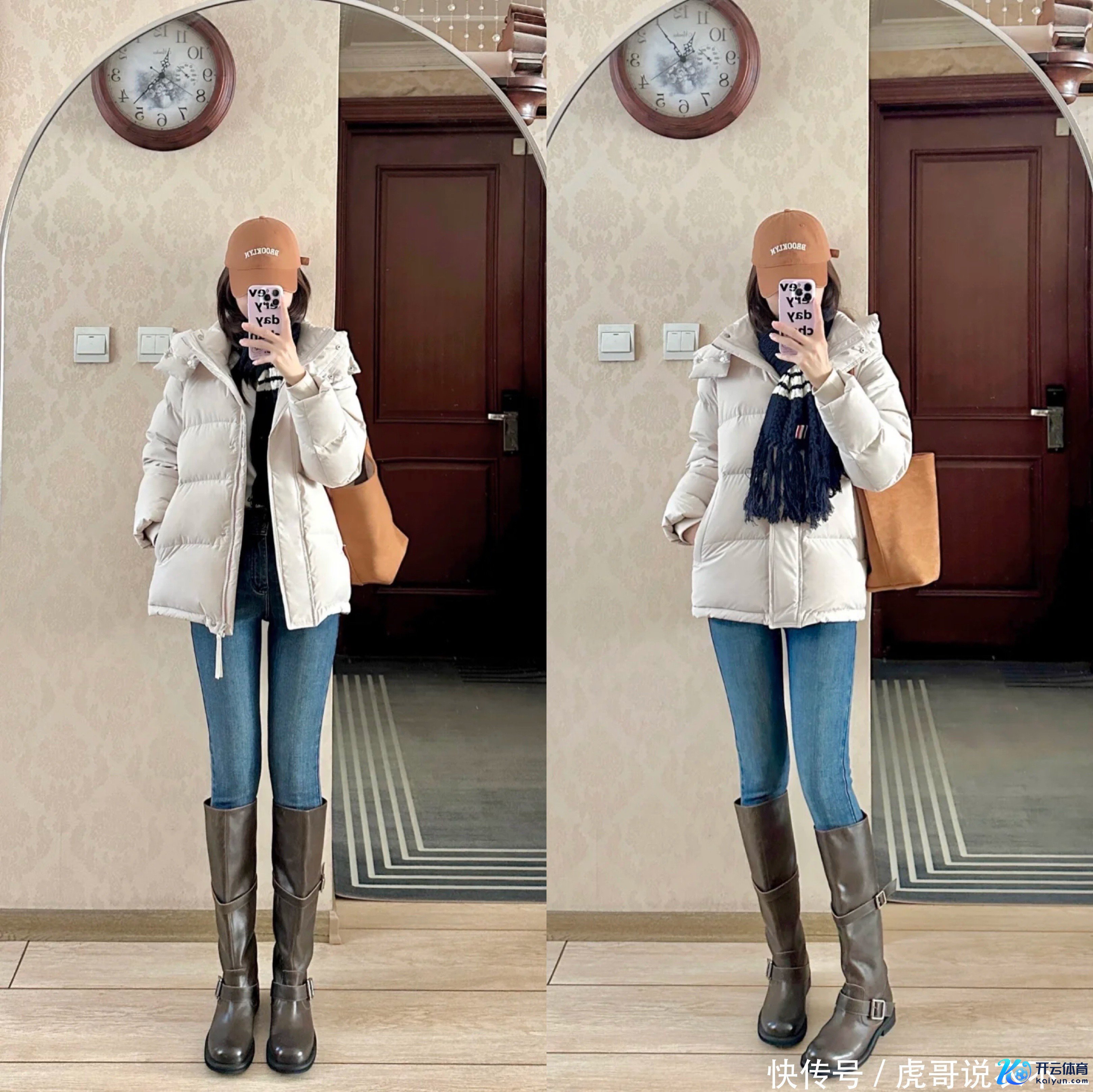 2、羽绒服+金莲裤+长筒靴