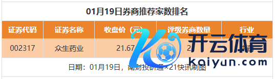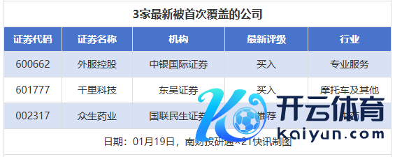 初度掩饰方面九游体育app娱乐,1月19日券商共给出了3次初度掩饰,其中外服控股取得中银外洋证券给以“买入”评级,沉科技取得东吴证券给以“买入”评级,众生药业取得国联民生证券给以“推选”评级。