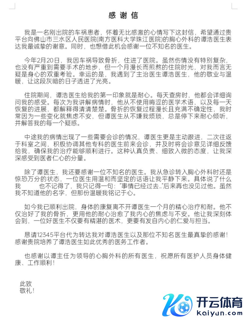 九游体育app娱乐 患者的感谢信-九游体育「中国」官方网站 登录入口 IOS/安卓通用版/手机app下载