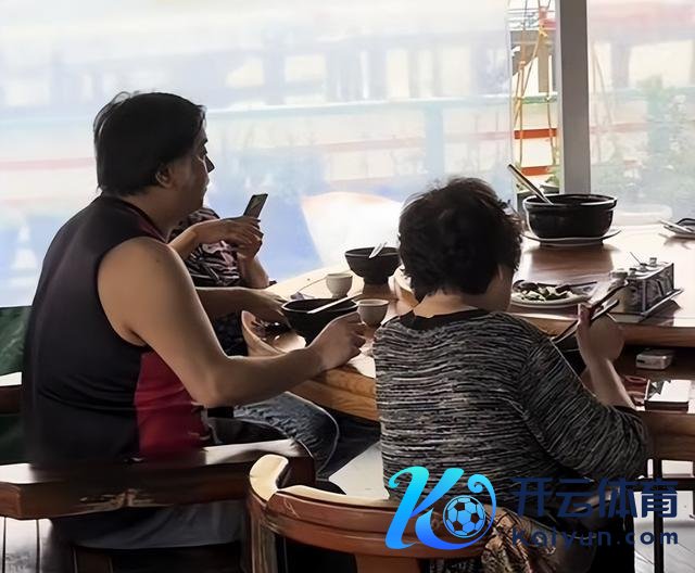 他同女儿、弟弟尹国雄坐在一张桌子的傍边。
