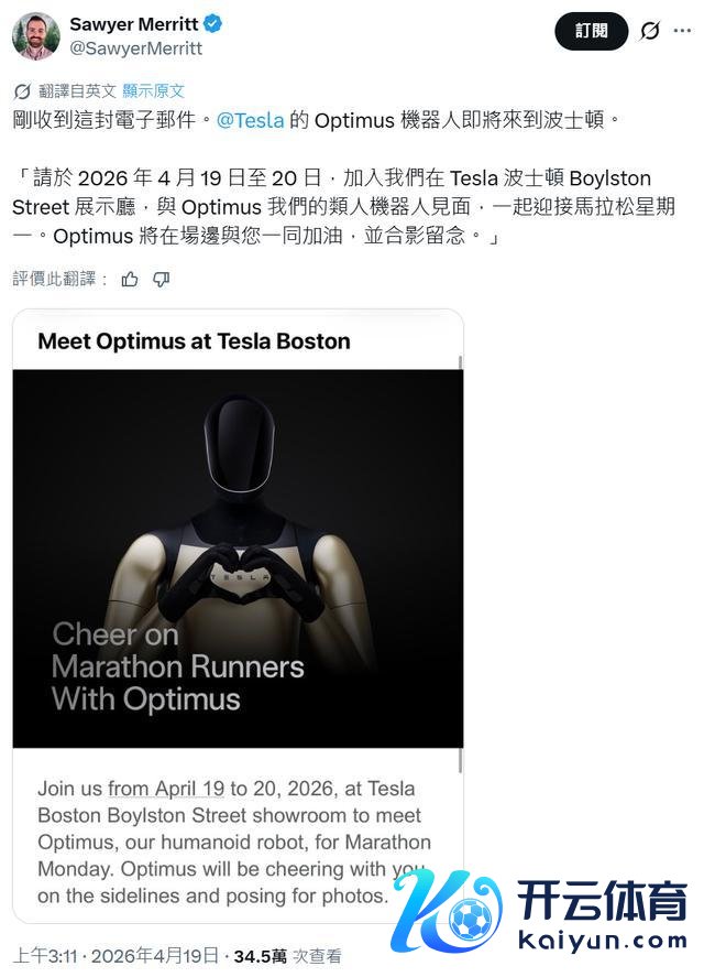 据报说念,目下 Optimus 机器东说念主正在博伊尔斯顿(Boylston)街 888 号的特斯拉展厅,而波士顿马拉松临了一英里的蹊径恰恰沿着博伊尔斯顿街全部延迟,选手们王人会历程大型商店,最终抵达位于科普利广场(IT之家注:Copley Square)的绝顶。